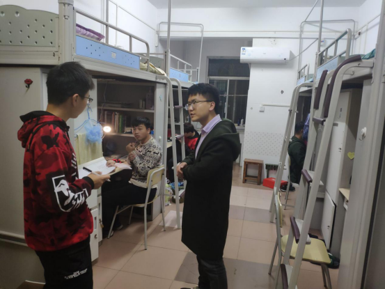 10月28日晚9:30,williamhill中国官方网站全体辅导员在颜学俊副书记带领下检查员工寝室,了解员工学习生活情况,提醒员工注意用电安全。