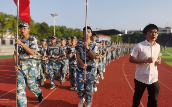 仪式第三项,公司21级辅导员张颖旭作国旗下讲话。张老师首先和同学们分享了自己员工时期一次次错过军训的故事。对于本次军训,张老师强调:军训的最深层次的意义在于磨炼人的意志力,就算有炎炎烈日,同学们务必坚持下去。随后,张老师对21级新生提出两点建议:一是要注重社交礼仪的养成,二是要尽快树立独立意识和自主意识。