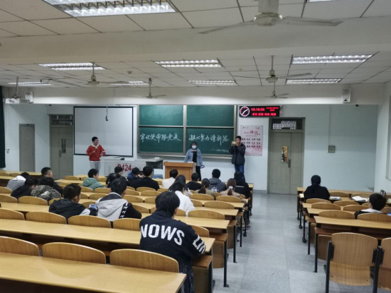 会议伊始,主持人宣读了本次团会的相关事务和宣扬主题精神,以及主要内容和相关注意事项。然后带领同学们学习观看了习近平总书记在纪念辛亥革命110周年大会上的重要讲话,习近平总书记在中央人才工作会议上的重要讲话等相关学习资料,以及习近平总书记关于弘扬爱国主义精神重要论述综述。