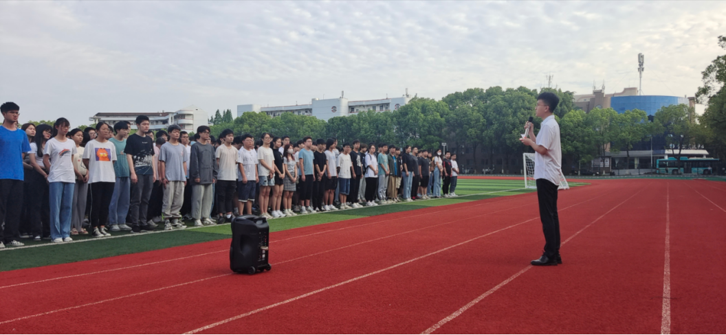 仪式第三项,2021级辅导员张颖旭作题为《志存高远、勉力笃行》的国旗下讲话,张老师结合当下毕业季部分员工不能顺利毕业的情况,警示同学们要提前做好规划,多向榜样看齐,积极进取。他讲到:“青年当志存高远。见贤思齐焉,见不贤而内自省也。大一时期,我们就要学会向榜样看齐,向优秀看齐,向标兵看齐。万不可放松自我,万不可佛系躺平。躺平意味着在愈发内卷的竞争浪潮中,被裹挟着前进,缺少主动性自然走不远,自然会被淘汰”。在讲话的最后,张老师祝愿同学们在外语等级考试和期末考试中旗开得胜。