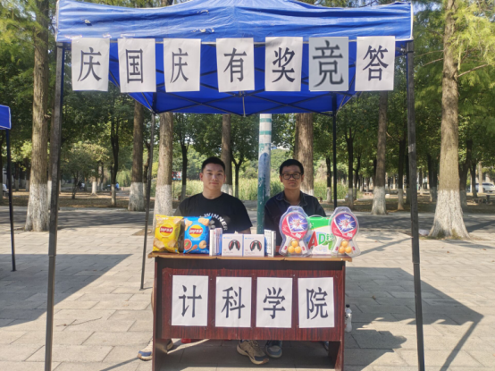 (通讯员:郭帅/摄,司博/文)为庆祝中华人民共和国成立诞辰73周年,形成积极进取、爱国爱党的氛围,培养同学们的爱国热情。2022年10月1日,计算机科学学院在活动广场举行了“庆国庆,学四史,有奖竞答”活动。