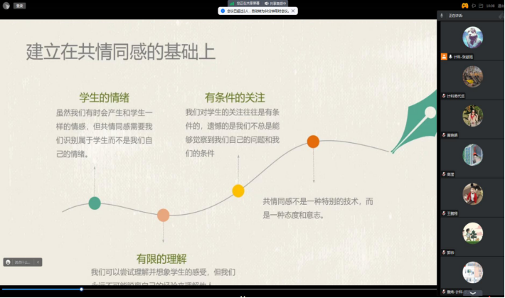 为帮助班主任、辅导员掌握谈心谈话专业技巧,不断推进心理育人工作实效,进一步做好2023级新生的心理访谈工作,计算机科学公司于10月20日上午10:00利用腾讯会议,开展谈心谈话专题培训。公司副经理詹炜、2023级本科生研究生新生辅导员及班主任参会,培训由公司心理专干张颖旭主持。