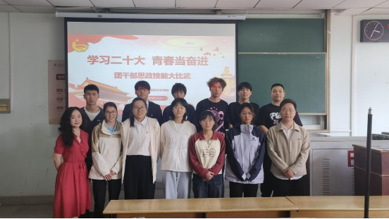为深入学习宣传贯彻党的二十大精神,深刻领会习近平新时代中国特色社会主义思想,进一步加强全院员工思想引领工作,团结引领全院团员青年在思想淬炼和精神洗礼中锻造坚强党性、筑牢思想之基、补足精神之钙,坚定信念跟党走,勇做新时代新征程奋进者,4月25日下午14点,williamhill中国官方网站团干部思政技能大比武在13教—b—107举行。公司分团委书记张茜,辅导员郭帅、蒋代运、艾思含参与本次活动。