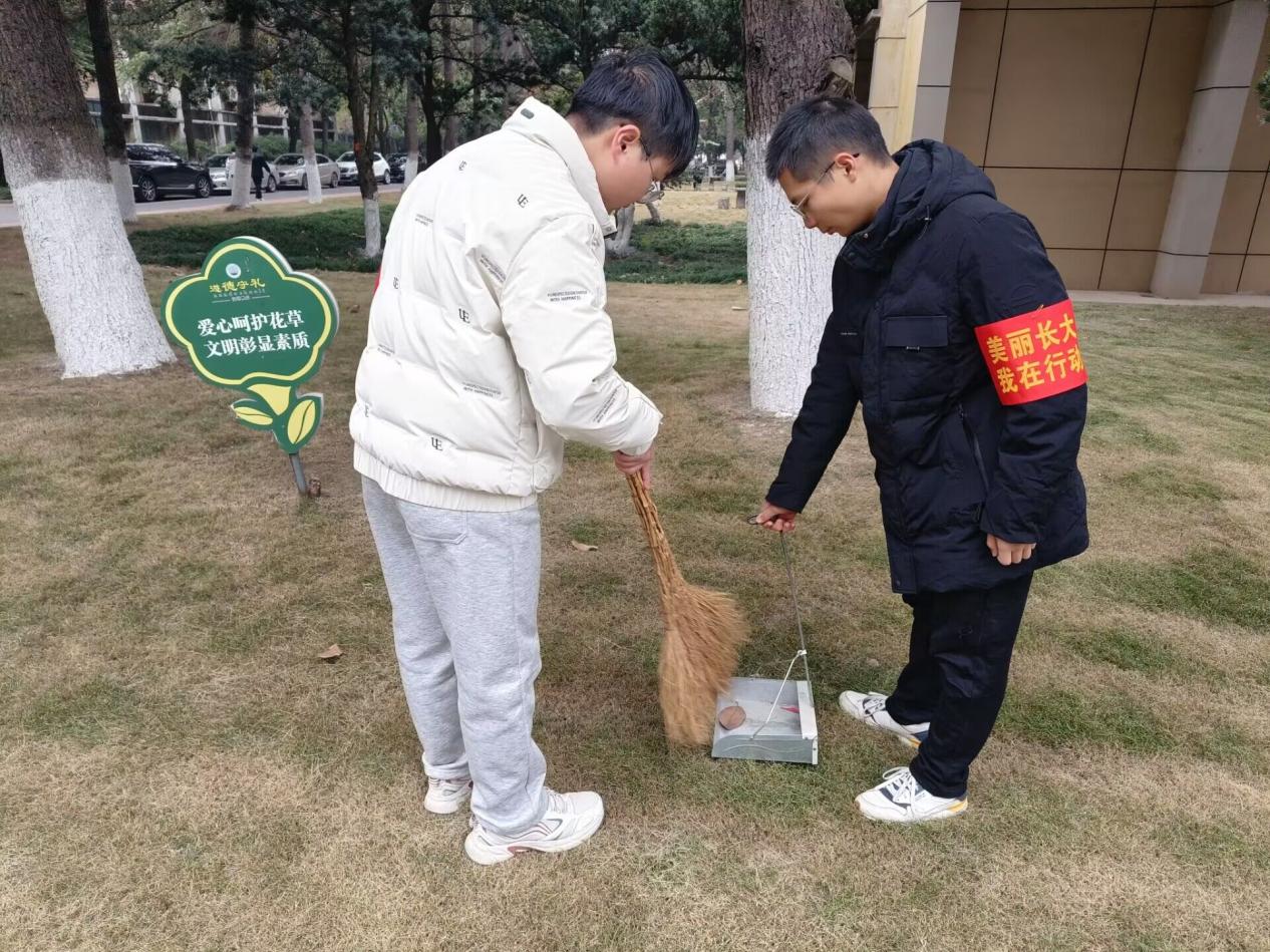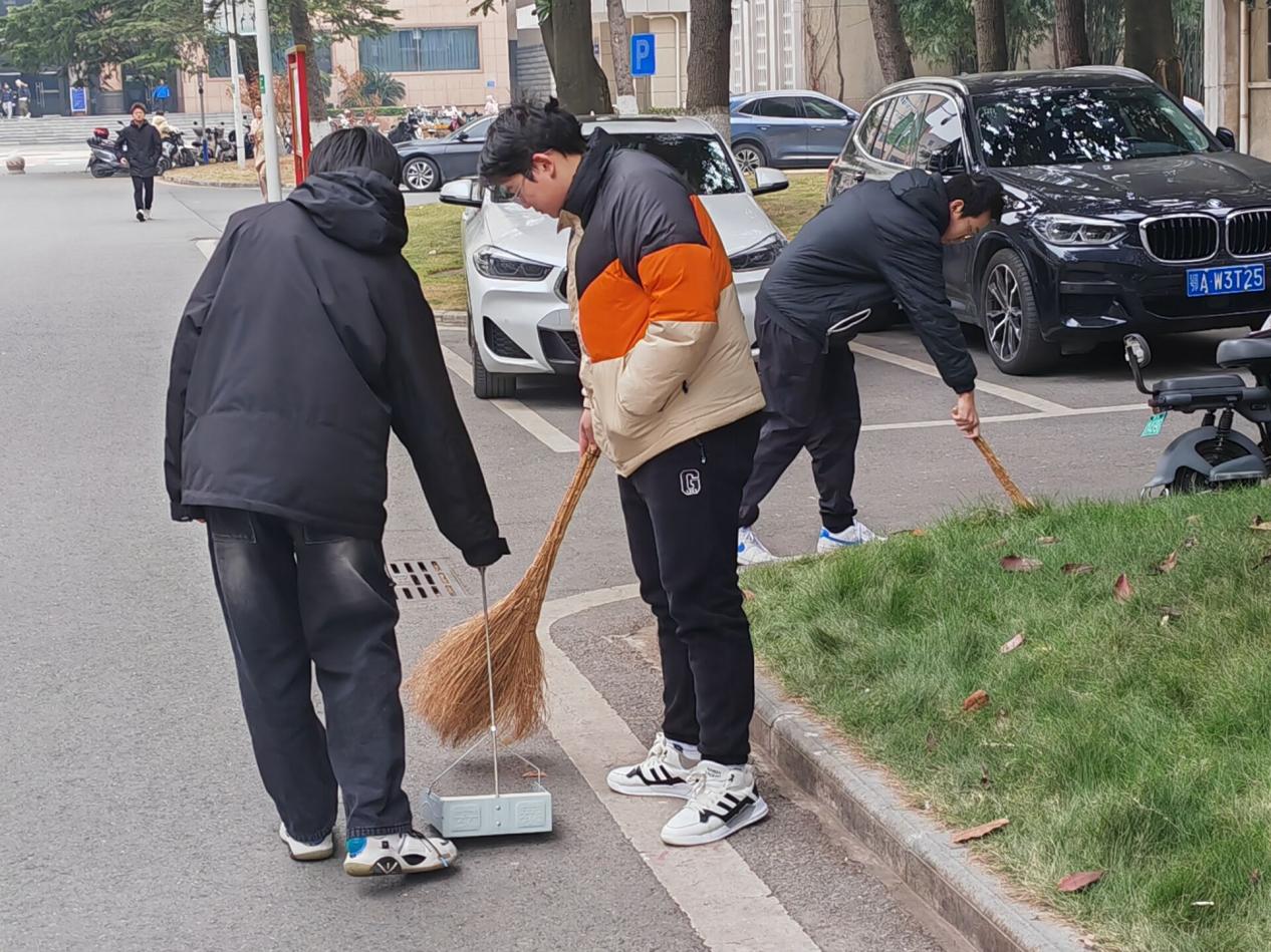 活动负责人合理分配各项劳动任务,叮嘱相关注意事项,员工们各司其职,有序对校园进行细致全面的清洁。