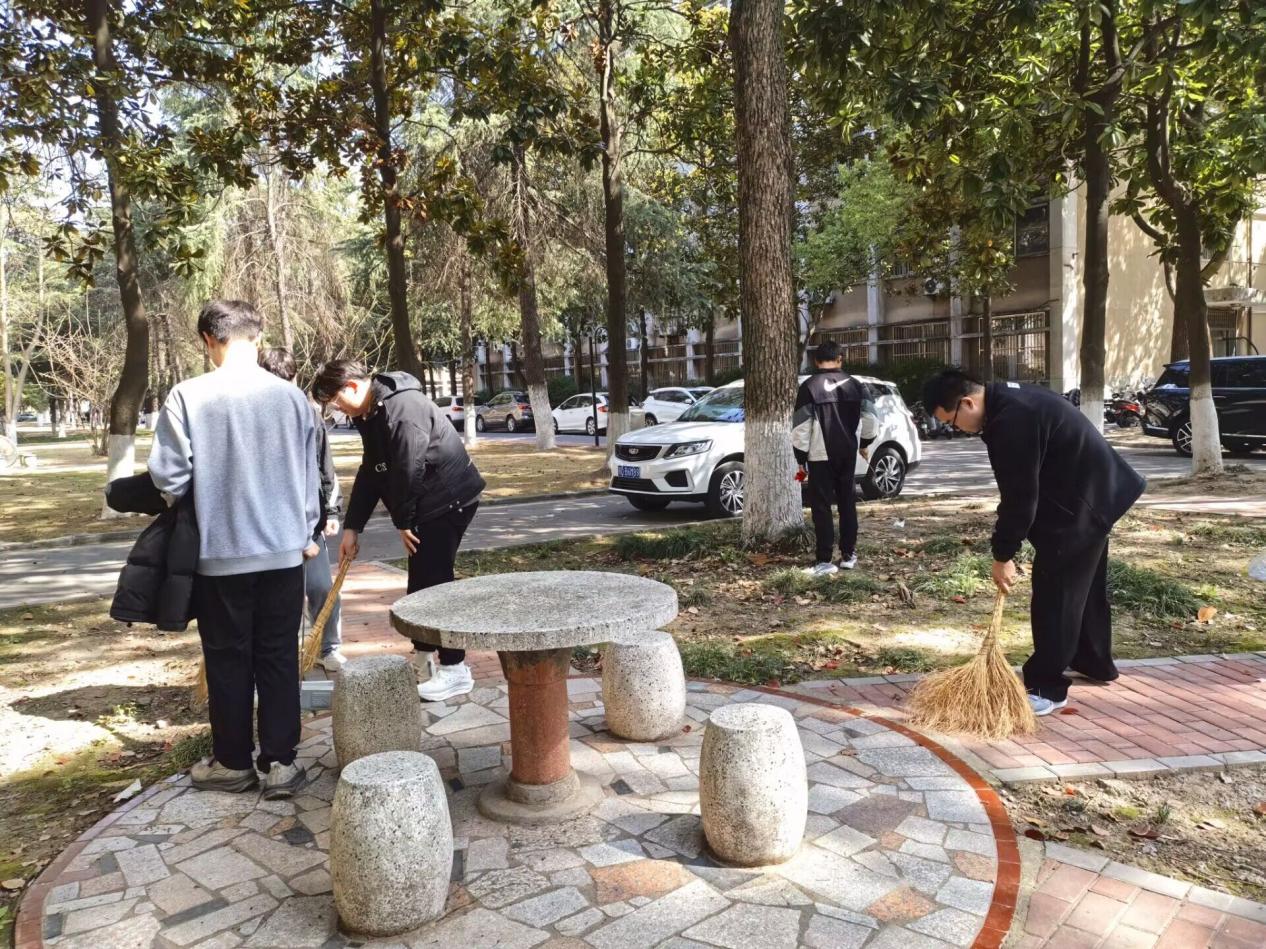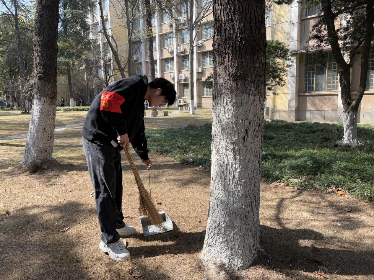 在公司负责老师的带领下,同学们手持扫帚、垃圾夹等工具,对路面落叶、卫生死角进行集中清理。经过一个小时的努力,校园环境焕然一新。