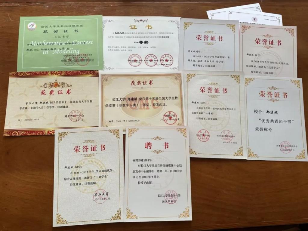 在学科竞赛上,自大二上学期接触Python程序设计课程以来,他对编程的浓厚兴趣逐渐滋生,意识到编程不仅仅是一项技能,更是理解和解决复杂问题的强大工具。为了深化这一兴趣,他在大二下学期及暑假期间参加了威廉希尔数学建模培训,学习了Matlab等编程语言。在数学建模竞赛中,郑建斌担任团队的主要角色,负责编程和模型搭建。他凭借扎实的基础知识和创新的思维,带领团队在比赛中取得了优异成绩。这段经历不仅增强了他的自信心,也让他深刻认识到“实践是检验真理的唯一标准”的重要性。
