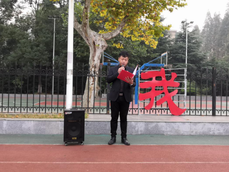 早晨的阳光消散了朦胧的雾霭,同学们精神焕发,等待着升旗仪式的开始。伴随着响亮的口号,国旗护卫队队员们迈着整齐划一的步伐,庄严而神圣地将国旗护送至升旗台,国歌奏起,全体师生行注目礼,国旗冉冉升起。随后,软工11701班舒子桓同学进行国旗下的演讲,她将我国饱经磨难的历史时期与如今的繁华盛世相对比,指出了国防的意义和重要性,只有拥有强大的国防力量和热爱和平的民族品质,才能拥有新时代重要的国际地位。长江后浪推前浪,一代新人换旧人。她以自身为例,呼吁广大计科学子不忘初心,顺应时代的要求,做为国家未来不断奉献的爱国青年。