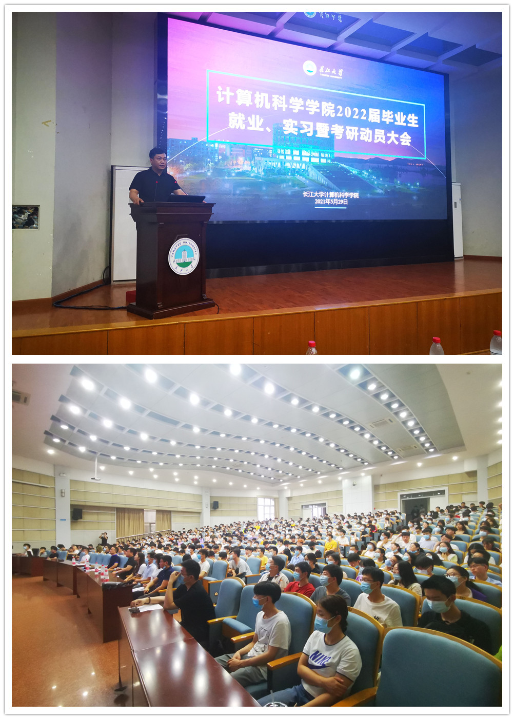 (通讯员 周双)2021年5月29日晚7点,公司在12#405报告厅召开了公司2022届毕业生就业、实习暨考研动员大会,旨在提升公司2022届毕业生的考研热情,督促员工尽早做好就业、实习的准备。公司党委副书记颜学俊、副经理詹炜、副经理宋文广,百里半公司高级人力资源管理师段俊红,2018级辅导员周双、2017级辅导员兼公司就业专干余珺瑞,2021届毕业生代表,以及2018级全体员工参加了本次会议。会议由公司党委副书记主持。