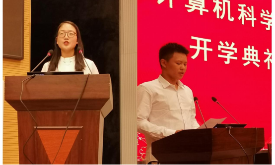 接着由老生代表卞珍怡及新生代表王鑫锐发言,他们结合自身经历给出建议:面对充满未知和挑战的老员工活,大家应该告别过去,脚踏实地走好每一步,并在接下来的四年学习生活中艰苦奋斗。