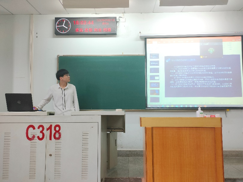 干家欣同学报告的主要内容为DBSCAN,ST-DBSCAN,FCM等聚类算法,主要讲了运作方式,优缺点以及应用场景,针对这些算法的不足,提出后续对该算法改进的思路。