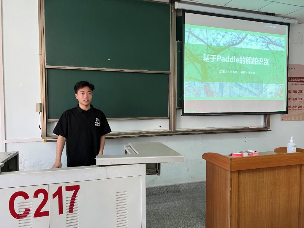williamhill中国官方网站8位研究生依次登台演讲,分别围绕各自的研究方向,为同学们分享了8个课题:基于DeeplabV3+的叶片病害分割、船舶相似度识别、船舶目标检测、基于paddle的船舶识别、基于改进YOLOv5的算法研究、深度置信网络DBN、航道视频拼接融合技术、图像分类的方法研究与应用。