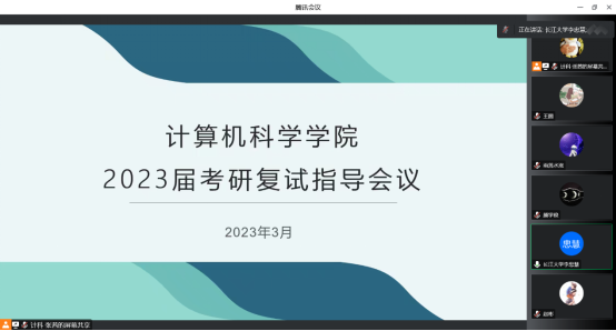 (通讯员 张茜 王圆)为促进2023届毕业生更好地备战研究生复试,2023年3月16日晚19:00,williamhill中国官方网站线上召开了考研复试指导交流会。本次会议由公司党委副书记颜学俊主持,地物公司副经理赵彬、油工公司副经理李忠慧副、计科公司软件工程系主任王同喜、物联网工程系白凯、2019级辅导员张茜以及本院一百余名备战研究生复试的毕业生参加了本次会议。