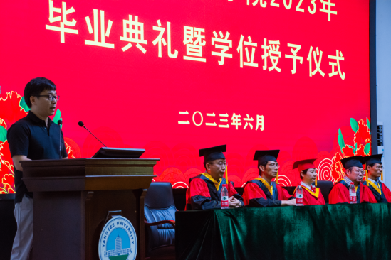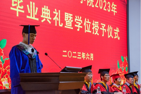下午两点,毕业典礼在暖心视频的共同记忆中拉开帷幕,主持人宣布典礼正式开始,全体成员激昂奏唱庄严国歌。首先公司党委副书记颜学俊宣读2023届优秀毕业生名单,今年本院共有70名本科生和8名研究生被评为威廉希尔“优秀毕业生”。颜书记鼓励优秀毕业生谦虚谨慎、再创佳绩,号召全体毕业生以优秀毕业生为榜样,勤奋学习、积极进取,努力成为新时代中国特色社会主义的建设者和接班人。