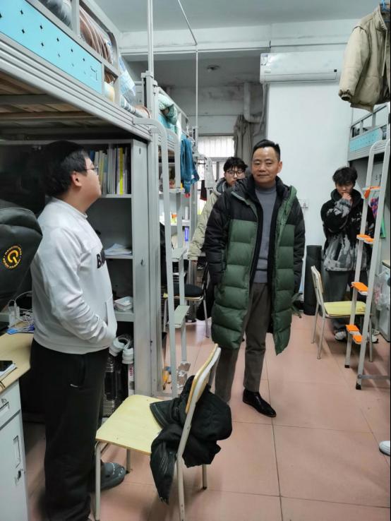 为深入了解员工生活状况,进一步加强寝室安全管理,排查安全隐患,12月14日下午,williamhill中国官方网站领导带领全体辅导员走进西校区新生寝室,开展走访活动。