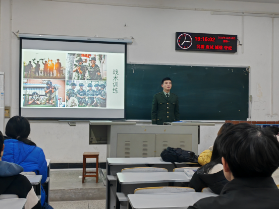 随后,征兵宣讲员崔姊威同学结合自己在部队的成长和淬炼经历,为同学们讲述了参军期间的感受,鼓励同学们正确认识参军意义,敢于追求梦想,肩负保家卫国的神圣使命。宣讲结束后同学们进行现场提问,宣讲员针对同学们的问题进行一一解答。