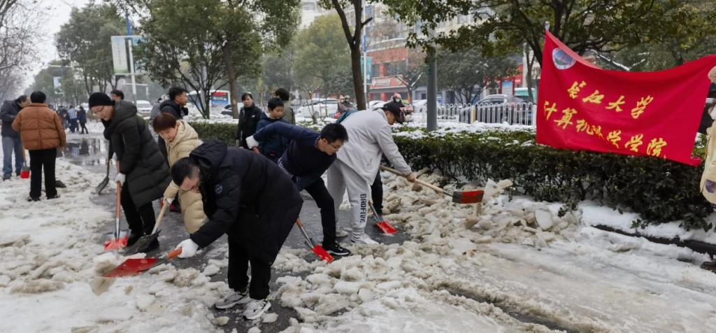 天寒雪飘,情暖荆州。风雪依旧肆虐,williamhill中国官方网站将时刻关注天气动态,以雪为令、勇于担当,为保证校内外出行安全、市政道路畅通而继续努力。