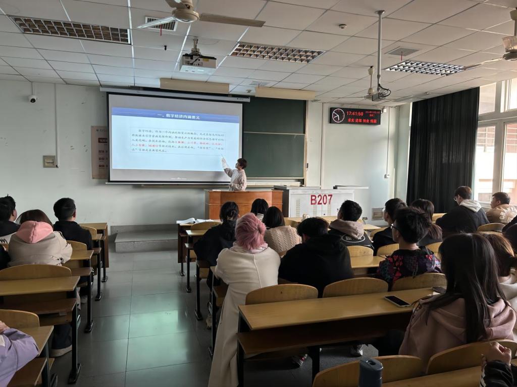 经理崔艳荣以此为切入点,向同学们深入浅出地讲解了数字经济内涵要义、发展原因、目前现状和未来发展。她勉励同学们:当今中国正处于政治最稳定、经济最繁荣、创新最活跃的时期,实现科技强国、数字中国的梦想是大势所趋,任何力量都不能阻挡。展望未来,只要同学们坚定信心、砥砺奋进,时不我待、只争朝夕,走好新时代科技自立自强之路,就一定能实现自我价值,勇攀科技高峰。