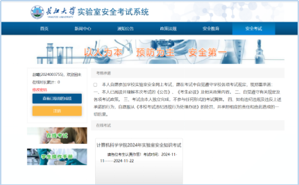 4.组织2024级本科新生完成实验室安全知识考试。实验室安全知识考试作为新生入学教育的重要内容之一,旨在增强员工的实验安全意识,保证实验教学安全顺利开展。