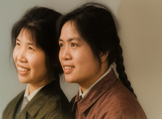 他们搭起一条“记忆生产线”——收:戴着手套的志愿者轻拭浮尘,同步录入照片背后的人物小传,让影像与故事一起“入库”;修:运用AI算法秒治“小伤”,Photoshop工笔细修“重残”,裂纹里重新长出眉眼,缺角处再度拼合团圆;送:照片打印装裱,附上照片电子版,并将部分已修复的照片生成动态视频,背景音乐一响,知青的绿皮火车、婚礼的大红花轿瞬间“活”了;展:修复好的照片对比图在社区进行展示,老人拄着拐杖来找自己的青春,孩子第一次看见父母的童年。
