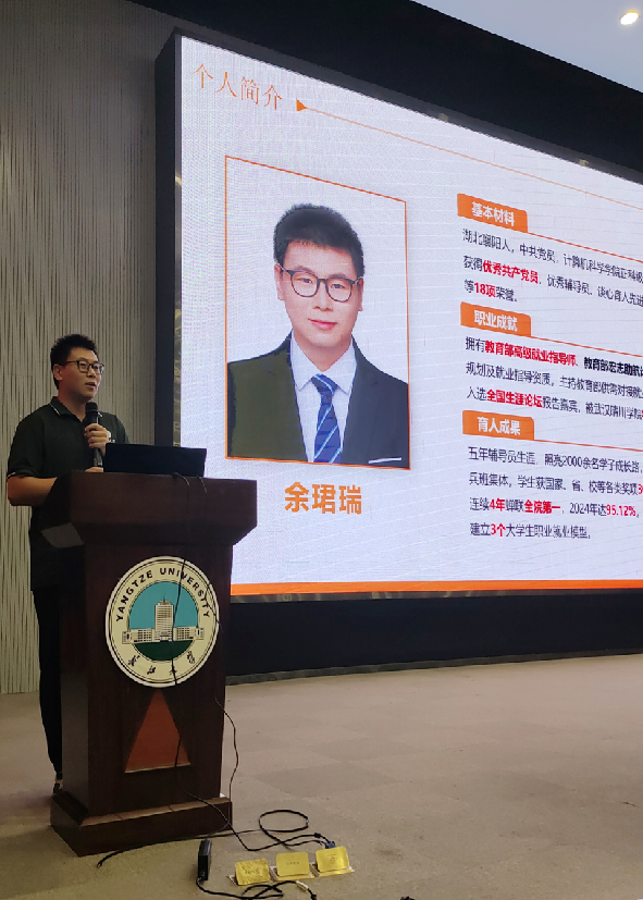 辅导员余珺瑞以“职业规划与安全守护”为主题,结合计算机行业发展趋势与就业前景,引导新生从“兴趣+能力”双重维度出发,科学规划大学学业路径。他还通过“老员工迷茫模型”解析,为新生提供了破解迷茫、明确目标的实用方法。在安全防护板块,余珺瑞老师结合近年来校园诈骗典型案例,详细拆解网络刷单、虚假兼职、冒充客服等常见骗局的识别技巧,反复强调“保护个人信息、树立防范意识”的重要性;针对即将到来的十一假期,他逐一明确假期安全注意事项及请销假制度,为新生安全过节筑牢防线。
