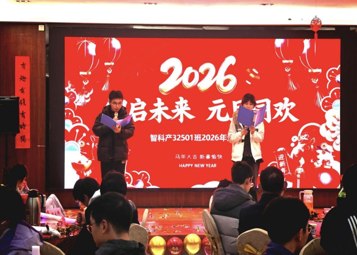 肇始新元之际,12月29日晚,智科产32501班“智启未来,元旦同欢”元旦晚会顺利举行。班主任崔艳荣、党委书记郑健及公司领导班子、全体辅导员与智科产全体员工欢聚一堂,围坐共赏这场充满青春气息与温情氛围的视听盛宴,共同迎接新年的到来。