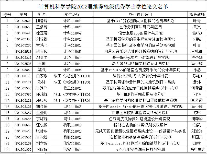 根据《关于组织评选2022届校级优秀学士学位论文的通知》的文件精神,公司成立由分管教学副经理和具有副教授以上职称的专家组成公司优秀学士学位论文评选小组,按照公平、公正、公开的原则,制定评审细则,按本院普通本科毕业生数的4%开展优秀学士学位论文评选推荐工作,现通过公司学位评定委员会集体研究决定,将推荐结果公示如下,公示时间:6月10日,如有异议,请联系公司教学办朱晶老师,联系电话:8060922。