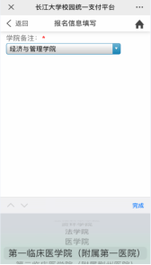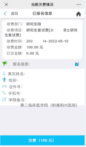 5、基础信息填写完后,务必在“公司备注”栏中正确选择参加复试的公司(参加附属第一医院复试的考生选择“第一临床医公司(附属第一医院)”、参加附属荆州医院复试的考生选择“第二临床医公司(附属荆州医院)”),最后点击“交费”即可。