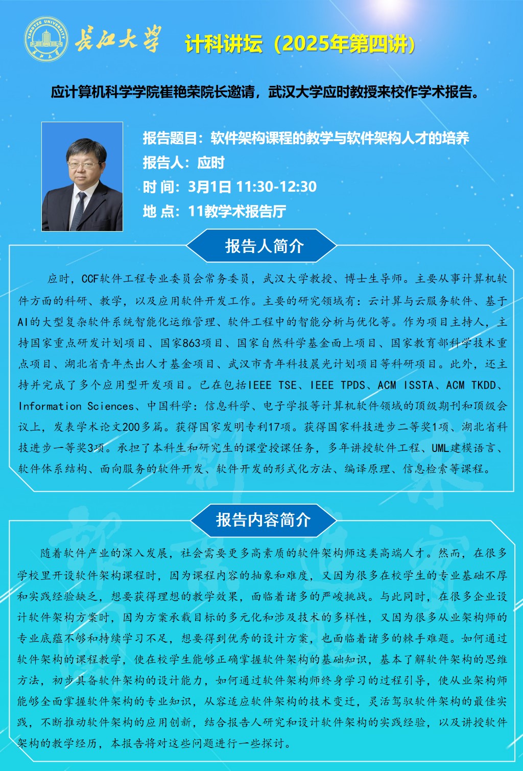 计科讲坛(2025年第四讲):软件架构课程的教学与软件架构人才的培养