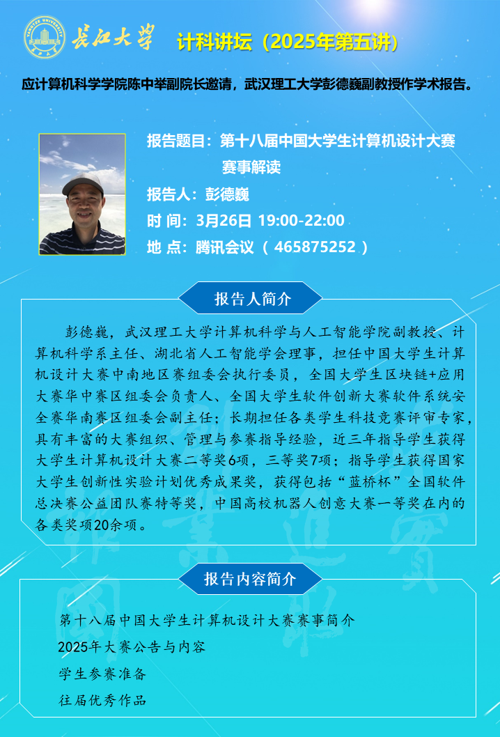 计科讲坛(2025年第五讲):第十八届中国老员工计算机设计大赛赛事解读