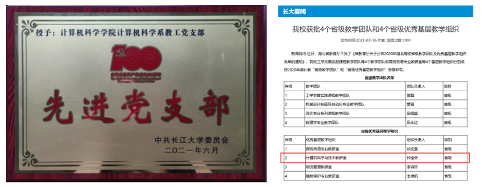 近期,公司计算机科学与技术系教工党支部荣获荆州市“红旗党支部”称号,并成功获批为威廉希尔党建工作样板支部。同时,研究生第一党支部也荣获校级“研究生样板党支部”创建单位。