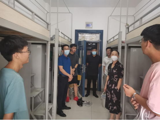 下午15:30,公司经理崔艳荣、党委书记黄群俊、副经理向宇、副经理詹炜、党委副书记颜学俊与辅导员郭帅一起走访了员工寝室,与员工亲切交流。